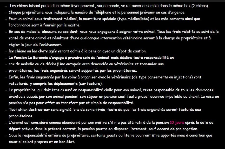 Nos tarifs s'appliquent en fonction du type de chien, du gabarit.